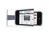 iPhone 4/4s protective case with a flip-out magnifying Fresnel lens to enlarge the display 1.5x. Turn your iPhone into a 5" tablet!
