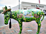 25 donkey sculptures painted by 25 different artists, all unveiled at once, used as freestanding art displays in Natchez, Mississippi