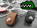 The CroClip is a small leather clip that uses powerful magnets to organize earbud cords and clip excess earbud cord to clothing.