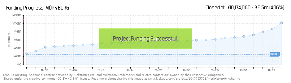 二つ目のストレッチゴールを達成しました。支援者数は早くも300名を超え、開始から8日で達成率200%を突破しました。皆様のご支援に感謝いたします! これにより、『MÖRK BORG... (Read More)