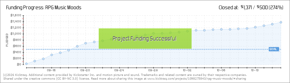 Hi RPG Music Moods Backers, We're funded and super excited! Thank you for helping to make this kickstarter a success :) Now even more great news. We have revised the stretch goals. Each new track unlocks at $700 funding goal increments! Help us... (Read More)