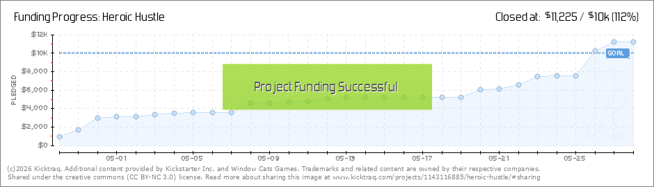 Hey everyone! Big news for Heroic Hustle, as one of our backers has offered to match every dollar pledged for the next $2500. This generous offer means that if we can get to $7500 in this next week, that’s enough to get us over the $10,000 finish... (Read More)