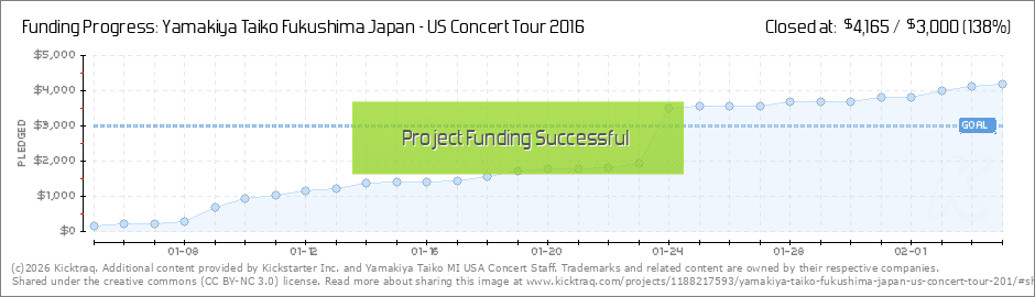 Help Yamakiya Taiko to fly to MI USA from Fukushima Japan! The concert will be held on Mar 22nd 2016 at the Power Center, Ann Arbor MI!