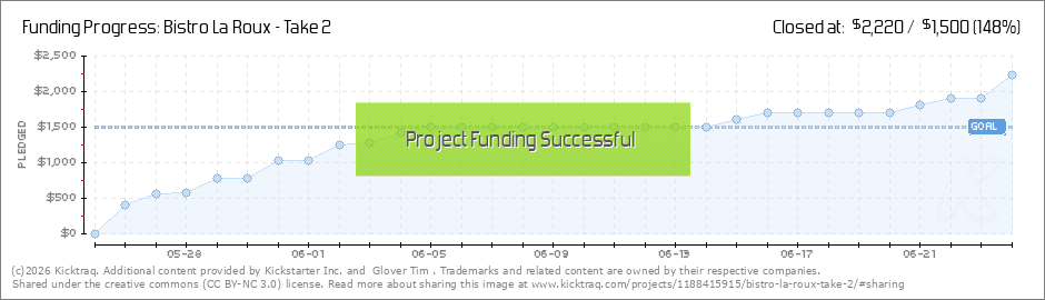 You'll need an HTML5 capable browser to see this content. Play 00:00 00:00 Thanks to everyone for backing us!! We hit our goal so you will all get your rewards. We are humbled by your generosity and we are excited to get the place open. ... (Read More)