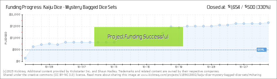 Thank you so much to everyone for making this campaign a success! Please share with your friends and family and lets see how many kaiju dice we can unleash upon the world! (Read More)