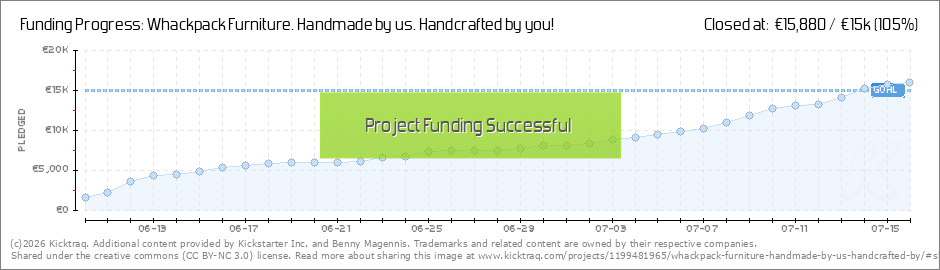 "The Holy Grail of Crowdfunding" Mission Accomplished. The Staffers at Kickstarter have been Charmed. Out of the thousands and thousands of live projects on Kickstarter Whackpack Furniture have been chosen. This is thanks to you, the backers!!... (Read More)