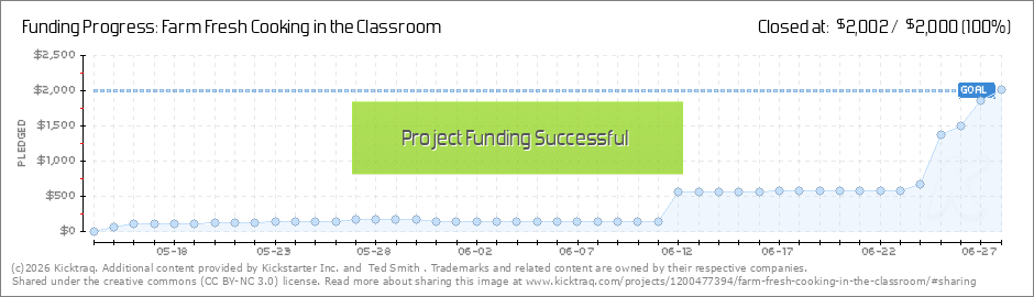 We have achieved our goal! Thank you so much to all the generous people who pledged to support this important program that will help underserved children learn how to cook with nutritious locally grown foods. Please stay in touch with Kids Cooking... (Read More)