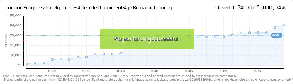 We officially reached our goal! A huge thank you to everyone who has backed Barely There — we truly appreciate your support from the bottom of our hearts. The cast and crew have poured so much passion and hard work into bringing this personal... (Read More)