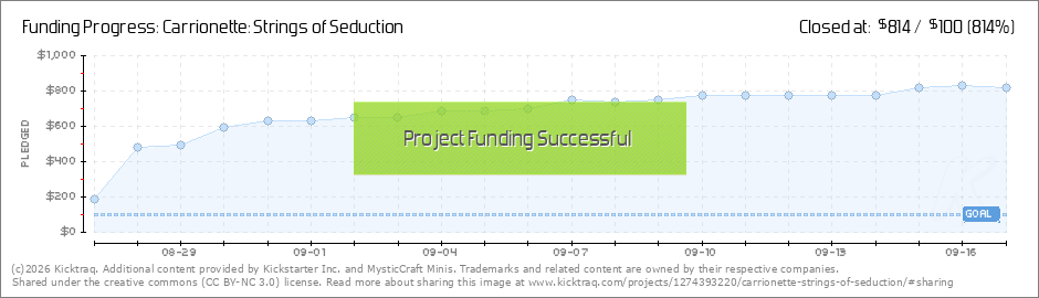 Help your backers reach your daily goals and help others see how you're doing. It's easy, with Kicktraq Mini.Here are a few quick snippits of code you can use to embed your personalized widget on your website, in your blog, and even on your favorite forum.