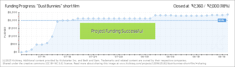 We have introduced two new tiers for our international backers! Now, anyone who lives outside the US can also receive cool rewards! For $25, backers will receive digital downloads of original artwork and the Dust Bunnies film (and a thank you email,... (Read More)