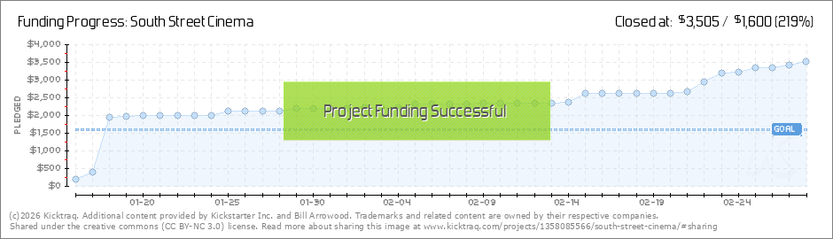 Amazingly, (thanks to our generous first 20 donors), we made our starting goal in less than a day, but every dollar we collect now keeps us open another month, adds to our programming budget and helps spread the word about the cinema.. so keep it up,... (Read More)