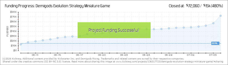 Dear Backers, Demigods Evolution campaign is over! This was a thrilling month and a great run! Well, the campaign is over, so what are the next steps? 1. A Kickstarter survey will go out in the coming weeks, which is hosted by Kickstarter... (Read More)