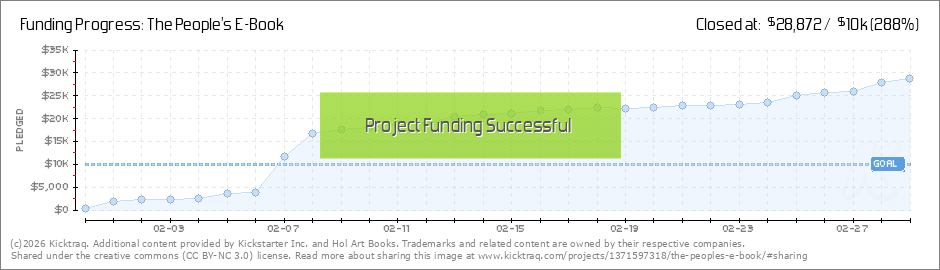 At midnight last night, exhausted and ecstatic, our campaign ended and The People's E-Book officially became people-funded! Thank you again to our amazing backers, and to the many many people that helped us spread the word along the way. It has been... (Read More)