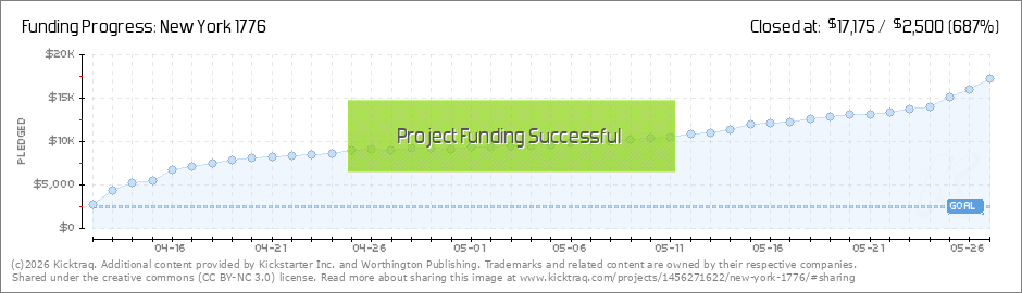 Thank you backers! You have funded the project AND unlocked goal #1 in four days. Now every Kickstarter copy of the game will include the companion book "New York 1776" written by Dr. David Smith. The book includes a detailed history of the... (Read More)