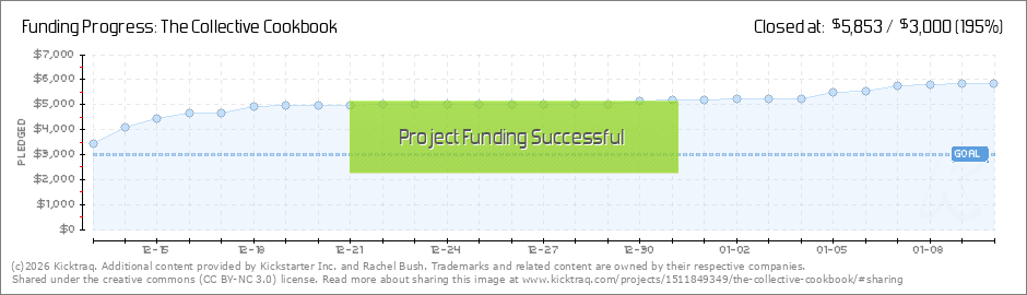 Thank you, thank you, thank you!We are blown away by the support of this project! Let's keep up the momentum. Our stretch goal is to get 250 backers for this project. The more folks that participate in this cookbook, the better the contents will... (Read More)