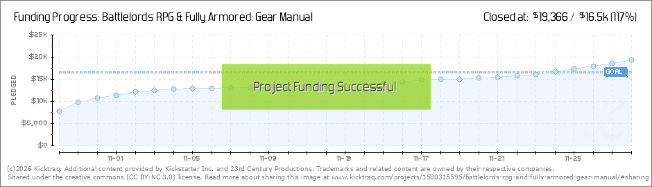 This has been our most successful Kickstarter to date! We are ecstatic to see all the new Battlelords fans out there and equally excited to bring you all the cool new gear in Fully Armored! We will post periodic progress updates here and let you know... (Read More)