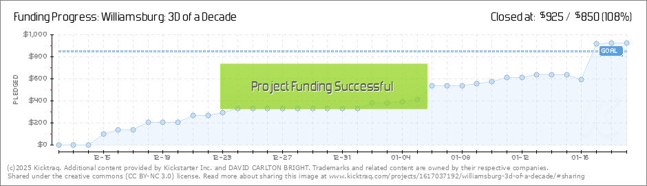 We have opened! All the work is done, the 3 D glasses are in, the projectors are running, the doors are open and the project looks beautiful. We are confident that we will meet our modest goal and appreciate everyone's your support. Hope to see you... (Read More)