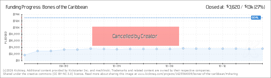Hello Everyone, I wanted to thank you for backing the Bones of the Caribbean project. Unfortunately, we have decided to end the project now, as it does not appear that there a possibility of funding. We will are going to evaluate how to move forward.... (Read More)