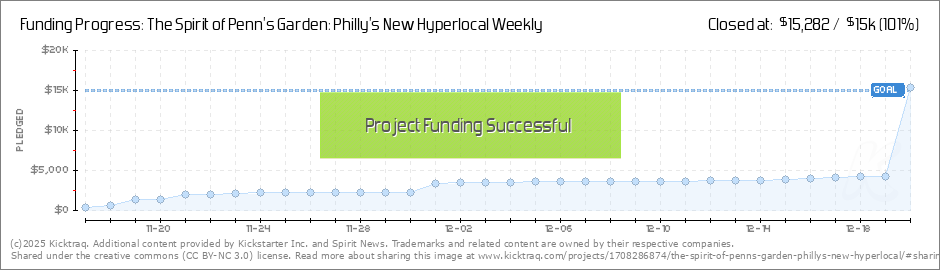 Thank you to everyone that donated on our launch day. Philly Magazine ran this article, http://www.phillymag.com/news/2015/11/17/fishtown-spirit-newspaper-kickstarter-penns-garden/, yesterday about our campaign and the two 'crazy' editors/founders... (Read More)