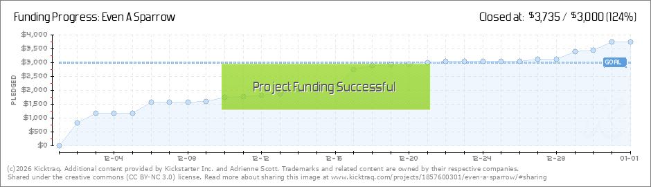 It's official! Even a Sparrow is fully funded. Thank you again for investing in this very meaningful recording. I'll steal a line from a friend of mine who said I feel a strange mix of humility and pride. (I'm probably paraphrasing.) I can't believe... (Read More)