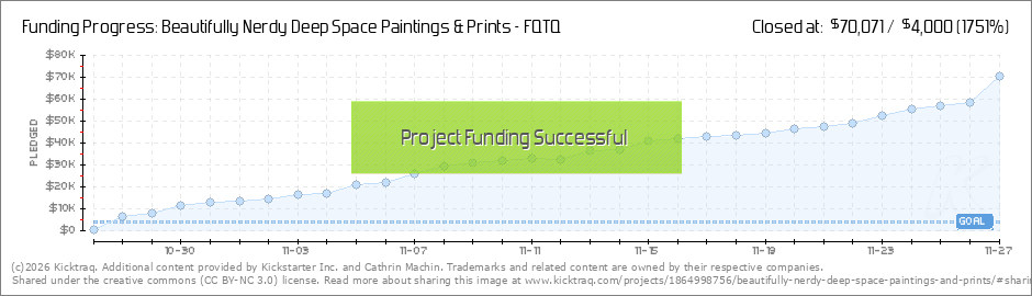 Hey awesome space peeps, Cotton rag print sizes, stretch goal update, live stream plans. Hope you're all well! I just wanted to drop a quick update to thank all the new backers and to everyone who's sent me messages. You guys are all awesome! So to... (Read More)