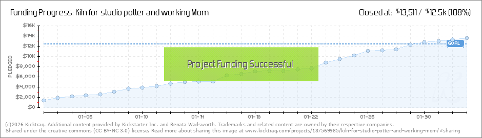 Thank you for helping me reach my funding goal! As I write this, my campaign is 102% funded. : ) With 48 hours left of my campaign, it's still possible (with your help) to reach one or both of my stretch goals. First and foremost, I need to buy kiln... (Read More)