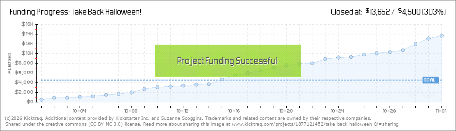 What an incredible day this has been! Exactly two weeks ago we launched our Kickstarter to fund the next year of Take Back Halloween. And today, less than halfway through our Kickstarter campaign, we reached 100% of our initial goal! We're doing... (Read More)