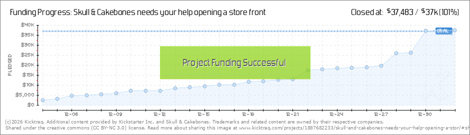 With 36 hours to go, we have nearly reached our goal! We couldn't be more excited. This month has been so nerve-wracking! We still need support to take us over the goal line, so please continue to spread the word about Skull & Cakebones,... (Read More)