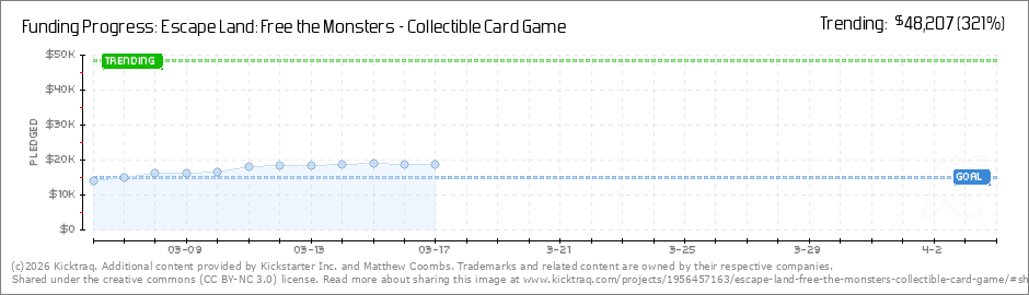 Good morning all! 106% funded, still some serialized Cryptags to go and this week is really focused on continuing to get the word out about Escape Land! Our first stretch goal offers 3 additional backer reward promos featuring full-art treatments for... (Read More)