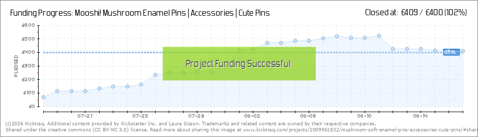 WE ARE FULLY FUNDED!!! YAY! Mooshi will be able to make it to manufacturing meaning all you amazing backers will get the Mooshi pins!! Look out for an email after the campaign has ended where you can choose which pin you would like to receive if you... (Read More)