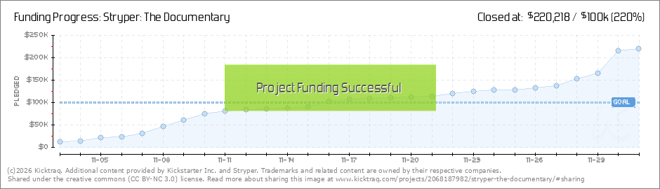 Stryper consisting of frontman Michael Sweet, drummer Robert Sweet, guitarist Oz Fox and bassist Perry Richardson have already raised more than $220,000 in pledges from 1,705 backers via their Kickstarter campaign for their upcoming band documentary, which is advertised as βThe Story, the Music, the Faith, & the Fans. 35 years in the making, please support the creation of the official Stryper documentary.β (Read More)