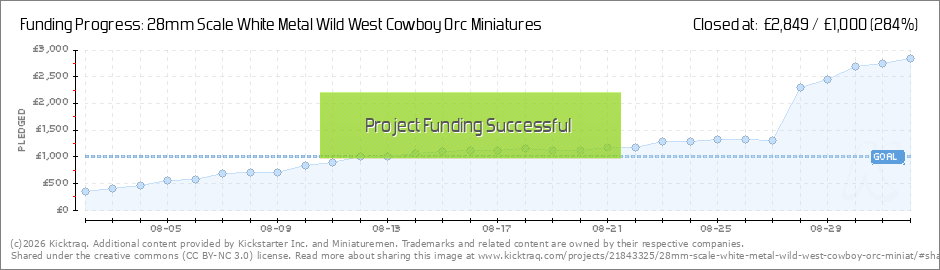 A big thank you to all our recent backers. We are over the moon that so many of you have supported our project. We have lots of ideas to expand this range with lots more Wild West Orcs, Goblins and Dwarves to start with which we have already begun... (Read More)