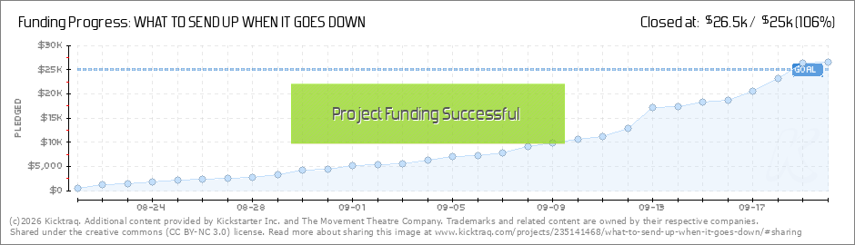 Help your backers reach your daily goals and help others see how you're doing. It's easy, with Kicktraq Mini.Here are a few quick snippits of code you can use to embed your personalized widget on your website, in your blog, and even on your favorite forum.