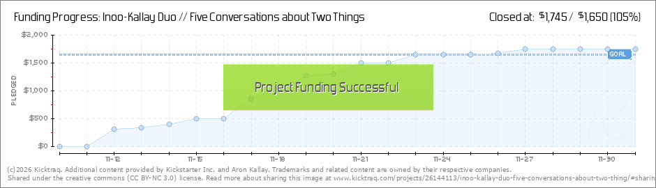 Happy Thanksgiving! I want to take this opportunity to sincerely thank all of the wonderful people who backed the Inoo-Kallay Duo! With your help, we made it to our goal of $1650 with nine days to spare! We're really honored to have such great... (Read More)