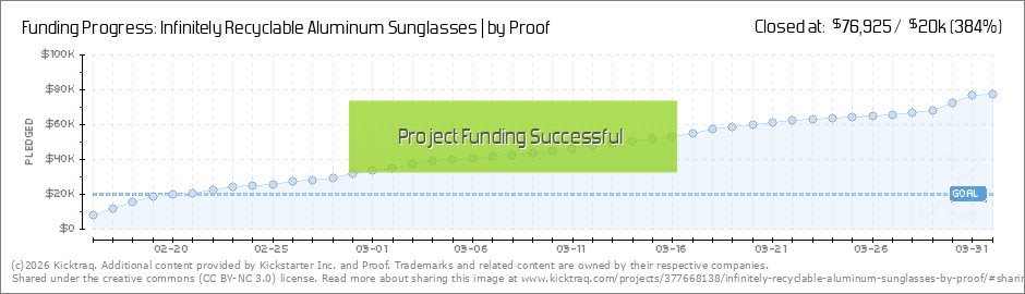 Good news!We're adding a Stretch Goal! Once we hit $35K, we're adding in another sunglass frame, The Overland. It's a sleek addition to this collection, so share the project with friends, family & co-workers to get the frame unlocked! If you... (Read More)