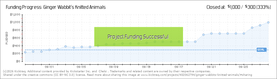 The funding goal to make the project happen has been met in just a few days! Thank you so much for supporting my dream! Now that the project is funded I will be able to make a lot of cute animals and I'm excited to see what color combinations all of... (Read More)