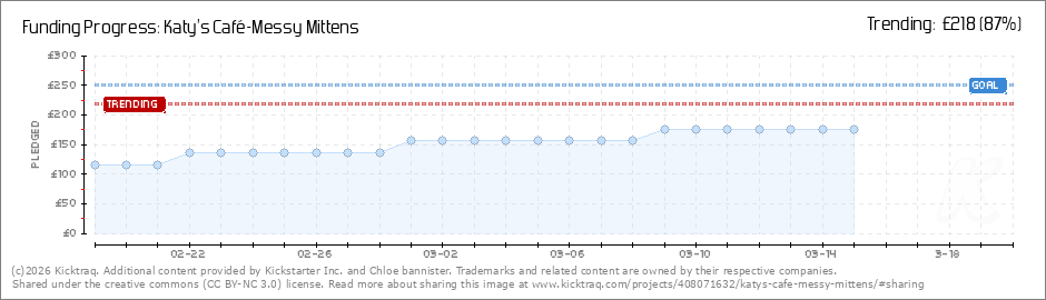 Help your backers reach your daily goals and help others see how you're doing. It's easy, with Kicktraq Mini.Here are a few quick snippits of code you can use to embed your personalized widget on your website, in your blog, and even on your favorite forum.