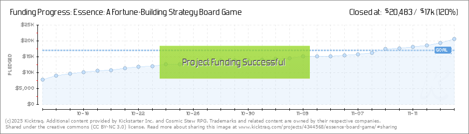Hello, dear backers! Thank you so much for a fantastic start to the campaign! Sitting at 60% funded, we're well on our way to being able to fully produce Essence Board Game - just as we've dreamed. Thank you for your support and for sharing with... (Read More)