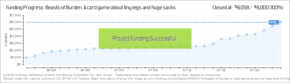 Hey! We're two weeks in and we're at 40% funding! It's going to be an interesting two weeks, but I am confident that Beasts of Burden is a fantastic, fun, and complex card game and I know that the art and design are absolutely killer. I know... (Read More)
