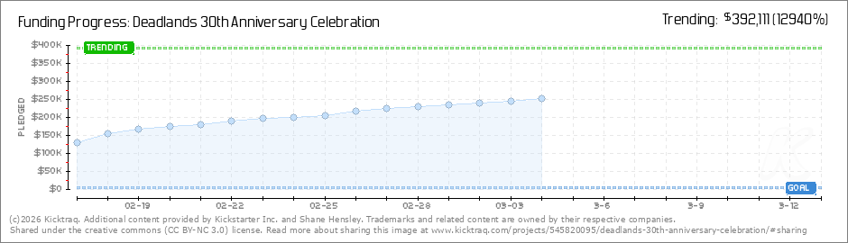 Yeehaw! Thanks to YOU we've been able to take Deadlands from its glorious past to its exciting future! It's been a long and winding road but it sure seems to have gone by fast. We've had three real editions, a couple of different printings, and a... (Read More)