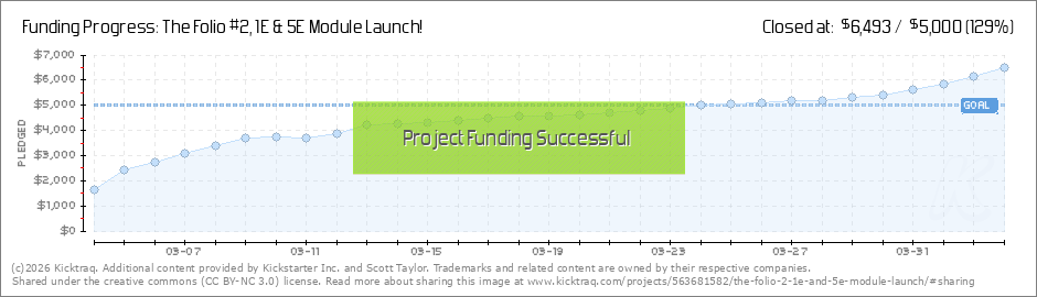 Staying right on target! Or so say's Jim Holloway :) Hey all, just wanted to say congratulations to all of your hard work in getting The Folio #2 to 50% so quickly. At this rate we are tracking to 530% funding, several more modules closer to... (Read More)