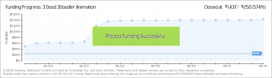 Thank you all so much for your generous support! I'm elated my 3Doodler dreams are coming true. As we countdown our final days (8 as of today) we're crossing our fingers that we make a little more, to ensure our history-making, groundbreaking... (Read More)
