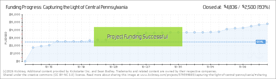 Hello Backers, The Kickstarter for Capturing the Light of Central Pennsylvania will end in 22 hours, but this is just the beginning! All of your contributions have pushed me far beyond my initial goal and are already propelling my painting to higher... (Read More)