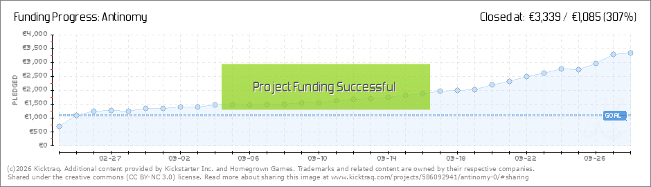 Dear backers, supporters and friends of Antinomy,we received many messages, on Twitter, Facebook and here, if it would be possible to release the world prototype for backers even if the mini-stretch goal has been missed. We have taken a look into it,... (Read More)
