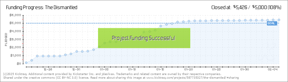Congrats! We made our goal! Thanks to everyone who donated. Make sure to like our Facebook page and share it with your friends! https://www.facebook.com/thedismantledseries?ref=bookmarks (Read More)