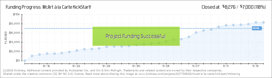 McArt à la Carte Kickstart has been FUNDED!!!! The biggest THANK YOU in the world to every one of you!!! Time to Stretch! Our 'We Are Funded! Reward' has been UNLOCKED! We are grateful for every one of you. Thank you from the bottom of our... (Read More)