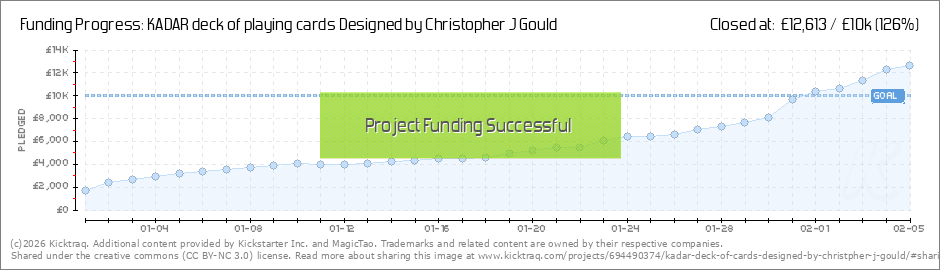 WOO HOO! We made it; we've now exceeded our funding target of £10.000. A MASSIVE 'Thank You' to everyone who has pledged their support for this project; we're delighted that the Kadar Card deck will now become a reality. We still have 4 days to go;... (Read More)