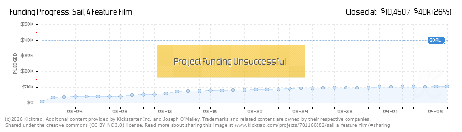 All or Nothing: No Extensions, No ExceptionsOnly 18 Days Left! Things are moving along here at Sail, A Feature Film, but this update is a reminder that time is limited. Right now, we're just about 20% funded, which is a very positive place to be in... (Read More)