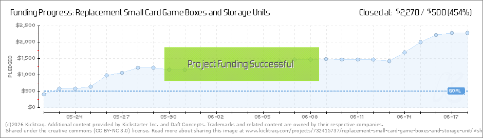 Hi everyone, we are off to a great start. We ask for your ideas, and we got several. From a suggestion that every joint be a hidden finger joint to Collectible Card Game Boxes. We can't do the hidden finger joints, but we can add holes to let you... (Read More)