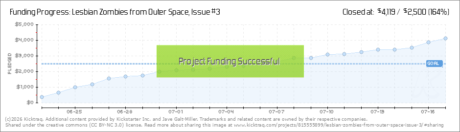 The third issue for Lesbian Zombies from Outer Space was fully funded a couple hours ago. Thanks so much for everyone's support! But we still have 10 days left, and that means I want to shoot for Issue #4 (which will not have lesbian zombie nuns,... (Read More)